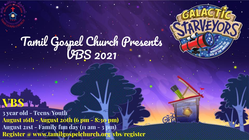 VBS 2021 - Galatic Starveyors | August 16, 2021 at 06:00 PM, until August 20, 2021